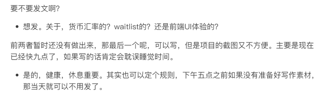 The writing question — should I publish today? After 5 PM, if there's no material, don't publish. Health is important.