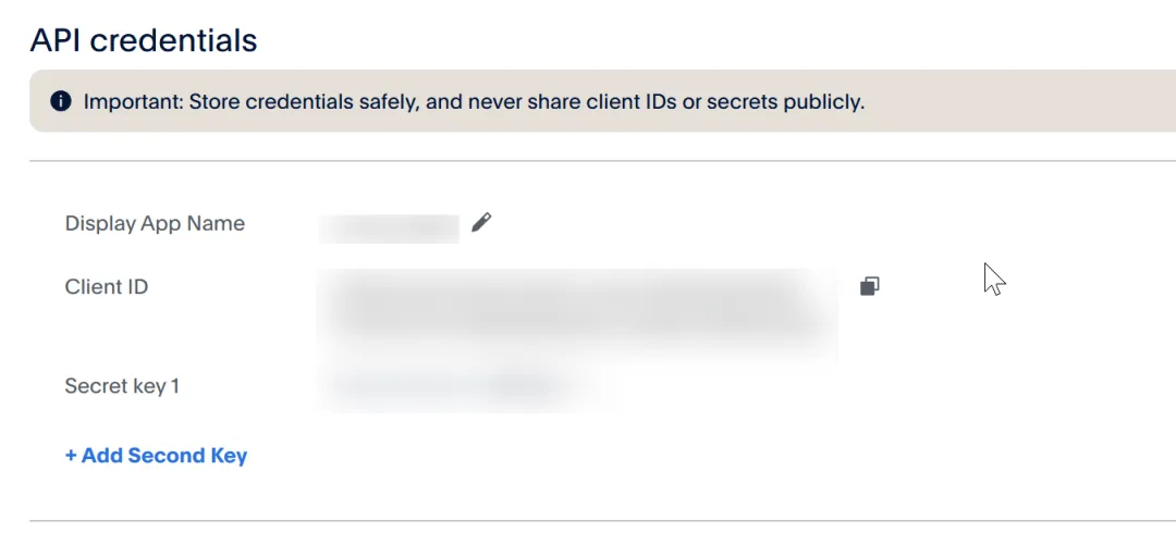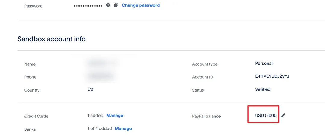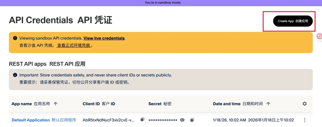 Then you can see the ID and Secret. Fill them into NEXT_PUBLIC_PAYPAL_CLIENT_ID and PAYPAL_SECRET in the root directory's .env.local file respectively.
