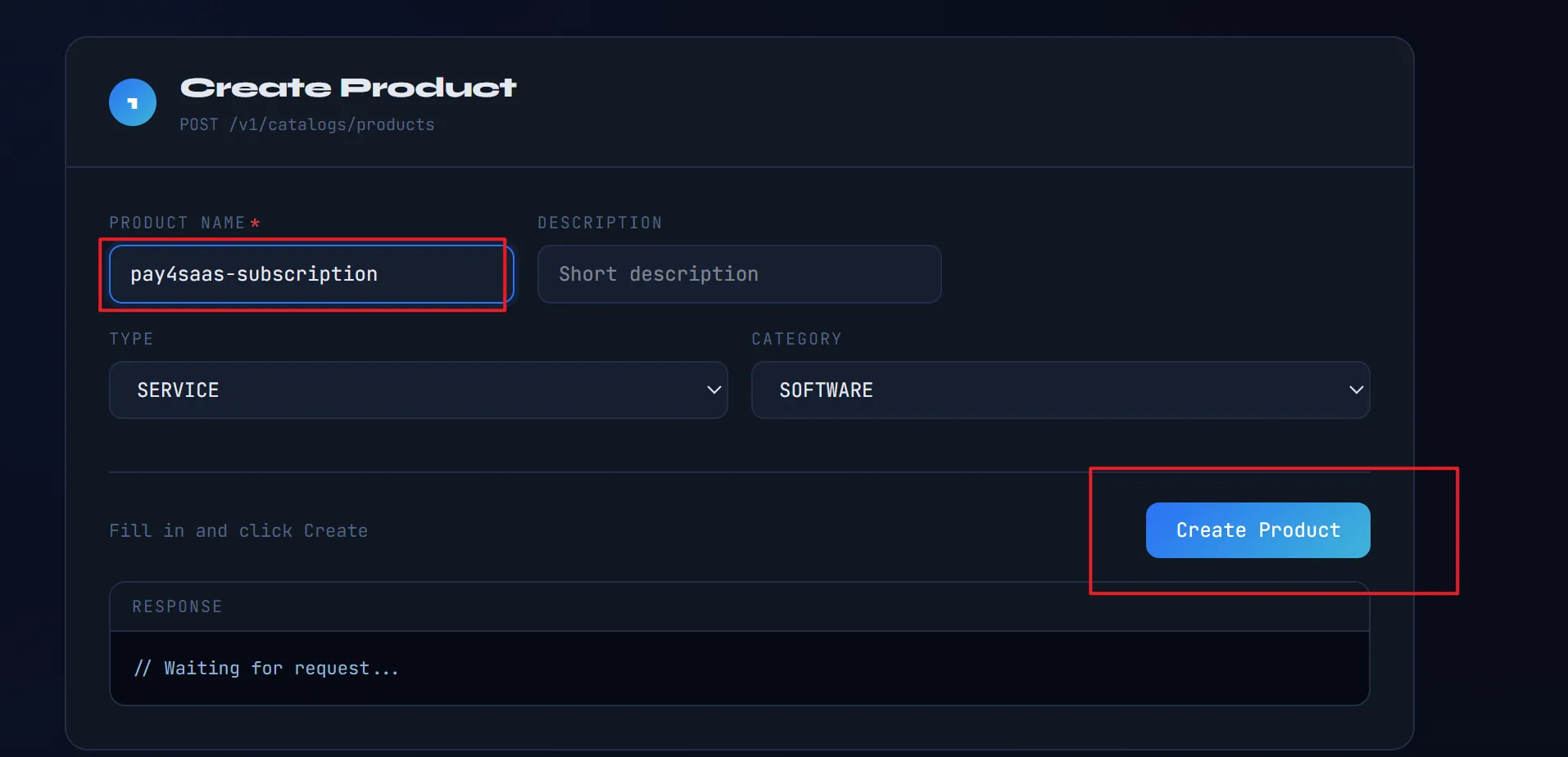 Fill in the Product Name and click Create. By default, it will use the token to create a product, and all subsequent Plans will be bound to this product.