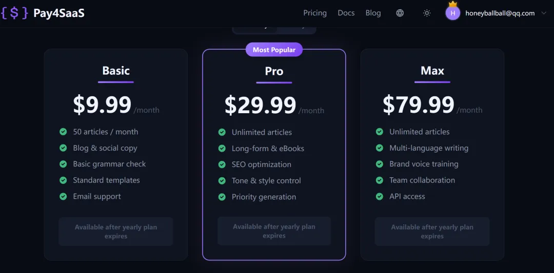 查完之后发现,大多数 SaaS 不允许年付中途切月付——年付有折扣,退款计算复杂,支付平台升降级容易出问题。对我来说,想清楚的瞬间就是行动的时刻,于是,拍板加了拦截。