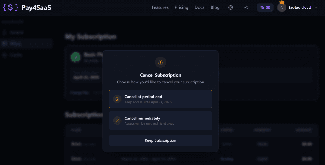 这些场景,不管是升降级、试用期、年付转月付,月付转年付等等各种边界情况,我在 Pay4SaaS 里都处理好了,你直接用就行,感兴趣的可以访问 pay4saas.cn 了解。