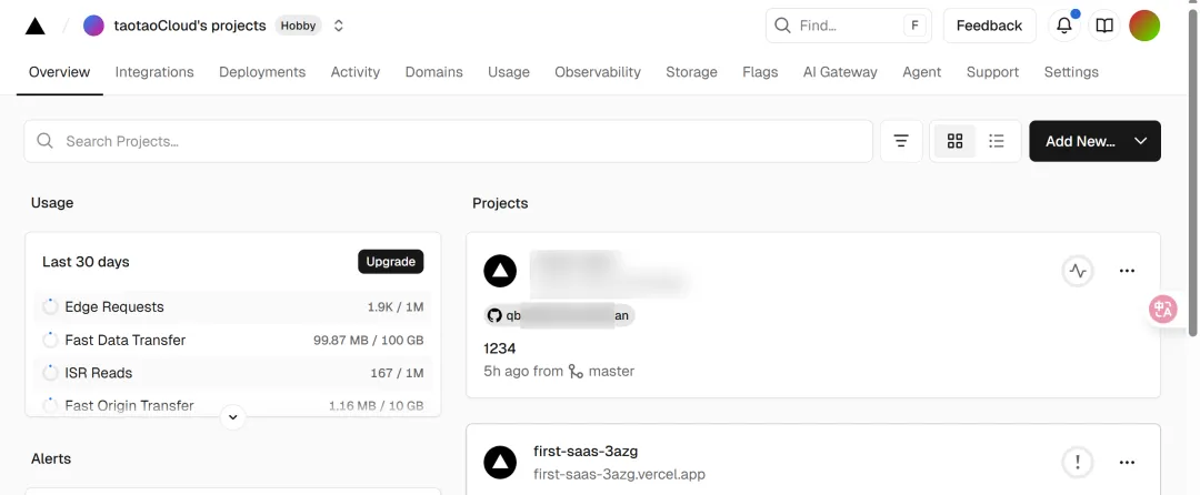 - Log in to Vercel and select the project we've already deployed.
