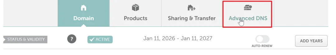 - Click Advanced DNS.