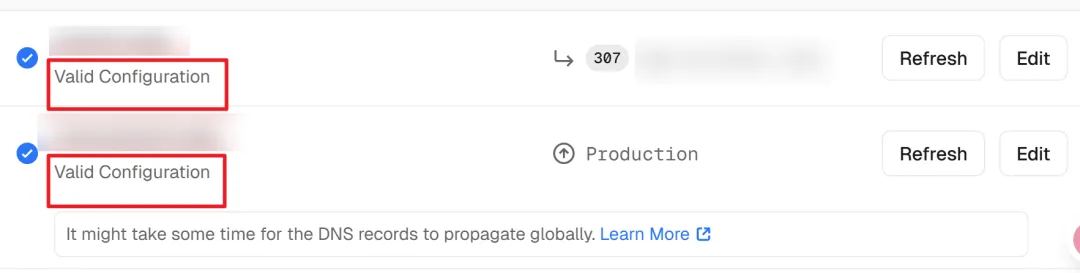 - Check if it's working. Then, go back to Vercel, wait 1-2 minutes, and you should see this.