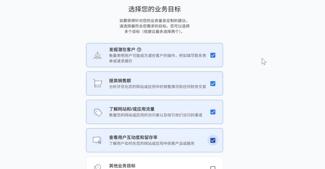 Business objectives — check the first 4:
