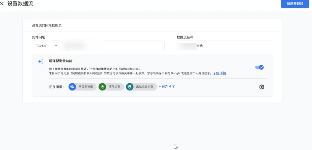 For the data stream name, use your domain name + "web" for easy identification: