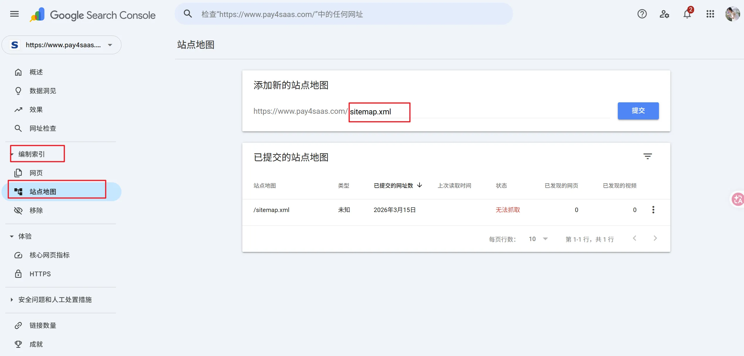 Enter your domain in the top search bar to check indexing status.